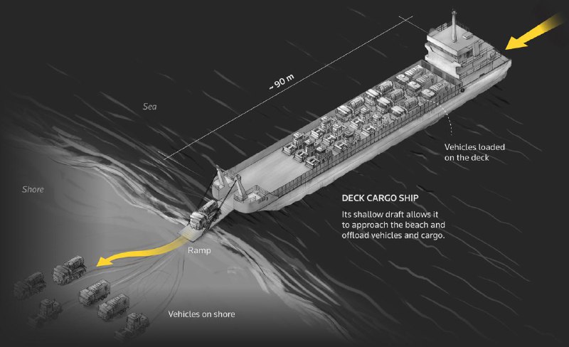 路透社与卫星图商BlackSky合作分析今年8月23日在广东捷胜某军事基地举行的一次登陆演习,动用了6艘滚装船和6艘甲板货船。这些船只在演习前后均为民用商船。卫星影像显示,一艘甲板货船利用附设的跳板直接将车辆卸载到海滩上。