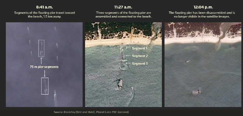 美军官员受访说,去年在加沙也曾建临时浮桥,期间因天气多次拆复建;美军浮桥组装投用,在理想海况下需24小时,共军3.5小时的成绩体现出其训练有素。