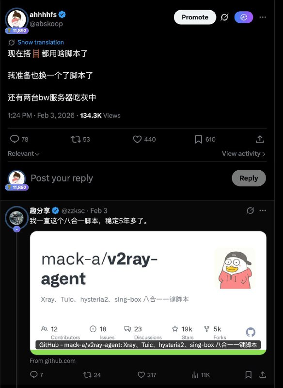 🖼 刚刚用的X友推荐的8合一脚本搭了 一键搭的上网加速工具 还可以 感兴趣的可以试试哈 非常简单一键操作 👉https://x.com/abskoop/status/20185561542139658…