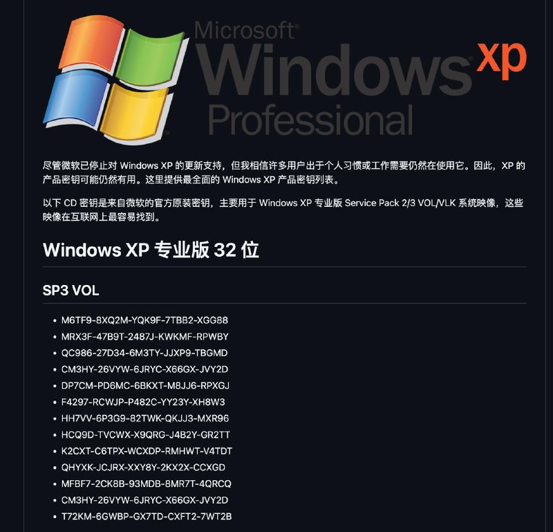 💻 Windows XP 所有版本通用产品密钥合集