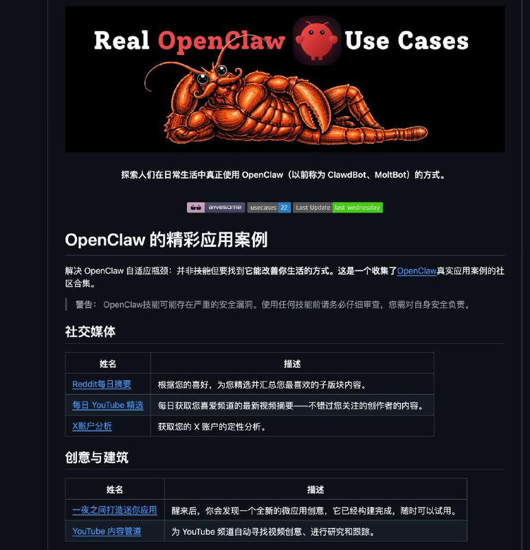 🖼 OpenClaw 的精彩应用案例 👉https://github.com/hesamsheikh/awesome-openclaw-usecases