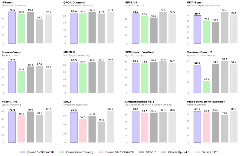 🖼 阿里巴巴开源全新一代大模型千问Qwen3.5-Plus,登顶全球最强开源模型。千问3.5实现了从纯文本模型到原生多模态模型的代际跃迁。千问3预训练在纯文本Tokens…