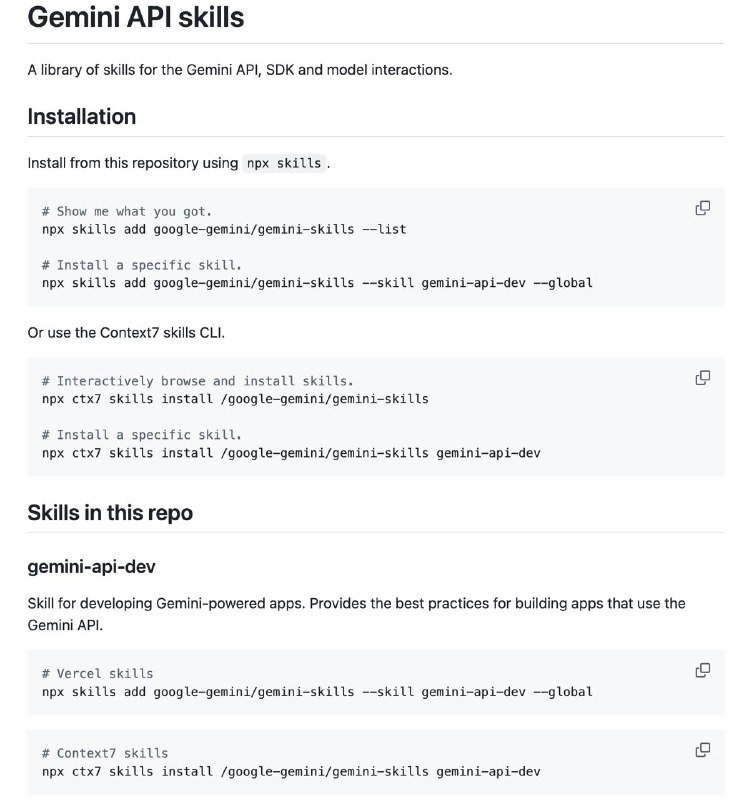 🖼 👏Gemini API skills:Gemini API、SDK 和模型/代理交互的相关技能 #网站 👉https://github.com/google-gemini/gemini-skills