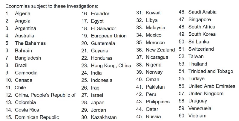 ↩️🖼 美国3月11日宣布对16国(中国、欧盟、新加坡、瑞士、挪威、印尼、大马、柬埔寨、泰国、韩国、越南、台湾、孟加拉国、墨西哥、日本、印度)以“向美转嫁…