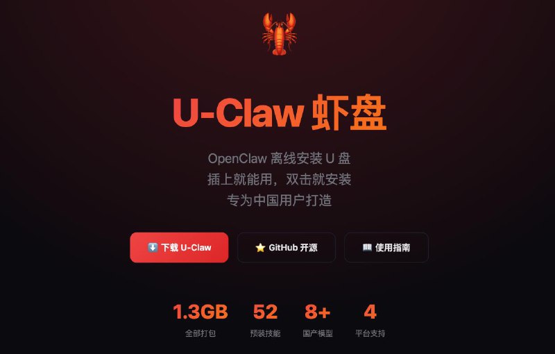 U-Claw 虾盘:教你把 OpenClaw(开源 AI 助手框架)做成 U 盘——插上任意电脑