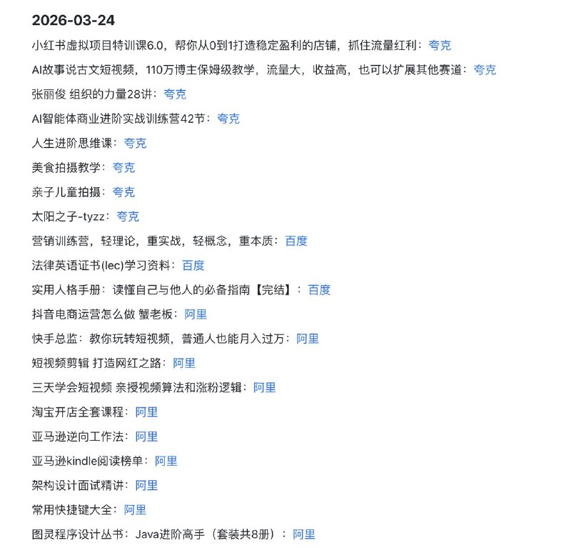 🖼 🗣️2026-03-24 实用教程 1️⃣ IT与极客: 架构设计面试、Java进阶高手全集 2️⃣ 全域变现: 小红书/抖音/快手实操、AI智能体商业化 3️⃣ 大厂管理: …