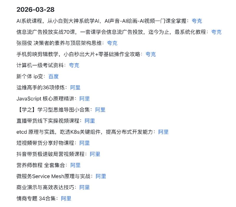 🖼 🗣️2026-03-28 实用教程 1️⃣ IT与架构: etcd与K8s实践、Service Mesh、JS精讲、运维实战 2️⃣ 全域变现: 信息流广告投放、抖/快直播带货、个体IP变…