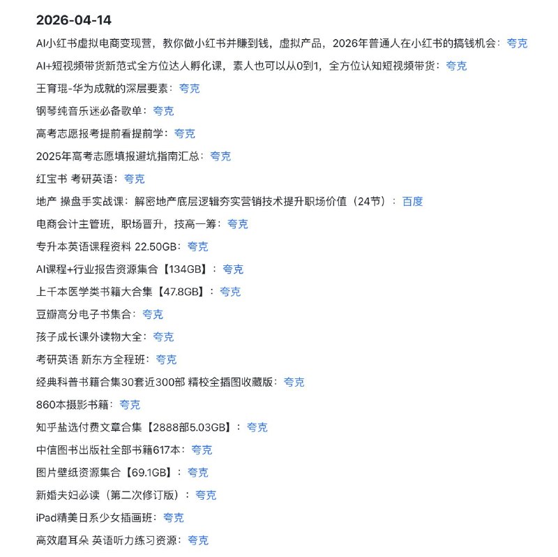 🖼 🗣️2026-04-14 实用教程 1️⃣ AI与商业搞钱: AI小红书虚拟电商、短视频带货全案、地产操盘、电商会计、华为管理要素 2️⃣ 升学与教育: 高考志愿填报…