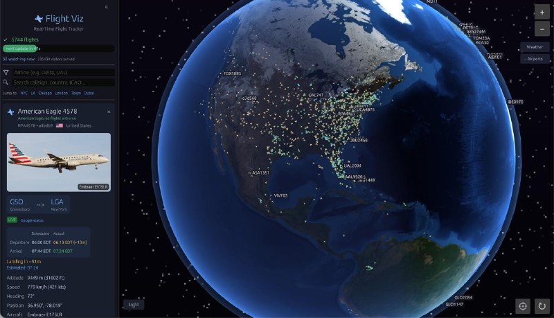 Flight Viz:一个免费的实时3D航班追踪平台